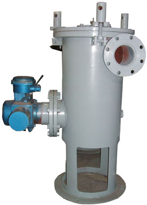 滤网的内外水压差增大到控制系统规定数值时(一般为500mmH2O柱),启动控制系统动用、排污机构投入工作,将附着物排出二次滤网,待内处压差恢复到正常时(一般≤400mmH2O柱)控制机构关闭、循环往复,从而完成过滤排污工作过程。也可以根据用户情况选择定时排污。