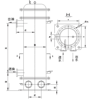 管式冷油器流动特点仍为油经壳程,水经管程。管外油侧传热系数为管内传热系数的1/10-1/20,热阻主要在油侧。本设备将传统的弓形隔板改为旋流导板,主要原理为:冷却油经冷油器壳程,随旋流导板导向旋转前行,油在旋转同时沿管周方向冲刷,管的结构参数是经多次对比试验进行优选的结果,性能优良,使用安全可*,为汽轮机组理想的辅机配套产品